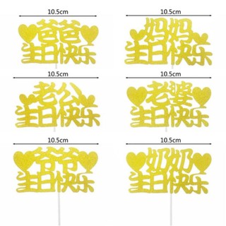 Chinese Mandarin Dad Mom Grandpa Grandma Husband Wife Happy Birthday 爸爸妈妈爷爷奶奶老公老婆生日快乐cake Topper Tag Decoration Shopee Singapore
